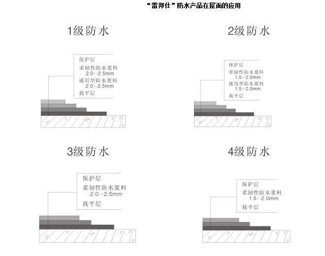 1、 確保雷邦仕剛性(通用型)防水涂料最少涂刷兩層,每層施工完畢后均應充分濕潤養護,防止過早失水使其達不到相應強度。