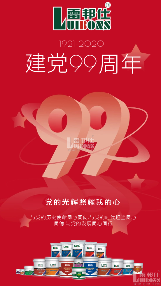 廣州雷邦仕化工建材有限公司向黨的生日獻禮:熱烈慶祝偉大的中國共產黨成立九十九周年,九十九年的激流勇進,收獲了國家的強大和人民的富裕;九十九年的凱歌飄揚,闊步前進將一個民族的夢想騰飛;在這里雷邦仕防水全體員工獻上最真誠的祝福,祝福我們的黨、我們的祖國繁榮昌盛,國富民安!