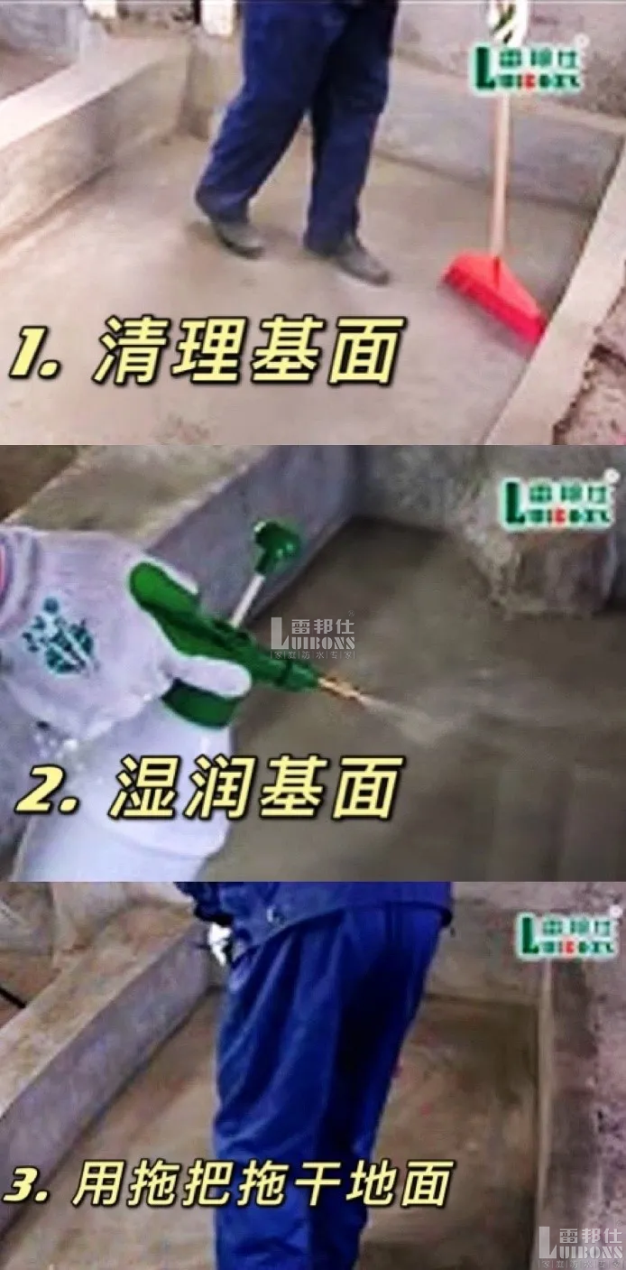 雷邦仕防水材料,水泥砂漿,掃把,電動攪拌器,毛刷或滾刷,濕布,噴霧灑水器具。